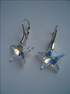 2/12 Souprava - naušnice zapíná na angl. háček, jednoduchá hladká klapka, tvar Swarovski Starfish 20mm - barva Crystal AB, přívěšek zavěšen na jednoduché šlupně